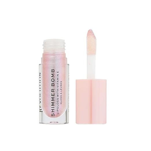 Makeup Revolution Baby Pink Lip Gloss for Women, Shimmer Bomb Lip Gloss – Sparkle Pink, Vitamin E for Extra Nourishment & Hydrating Lips, Coconut & Rosehip Oil, Shimmery & Sheer Formula – 4.5ml
