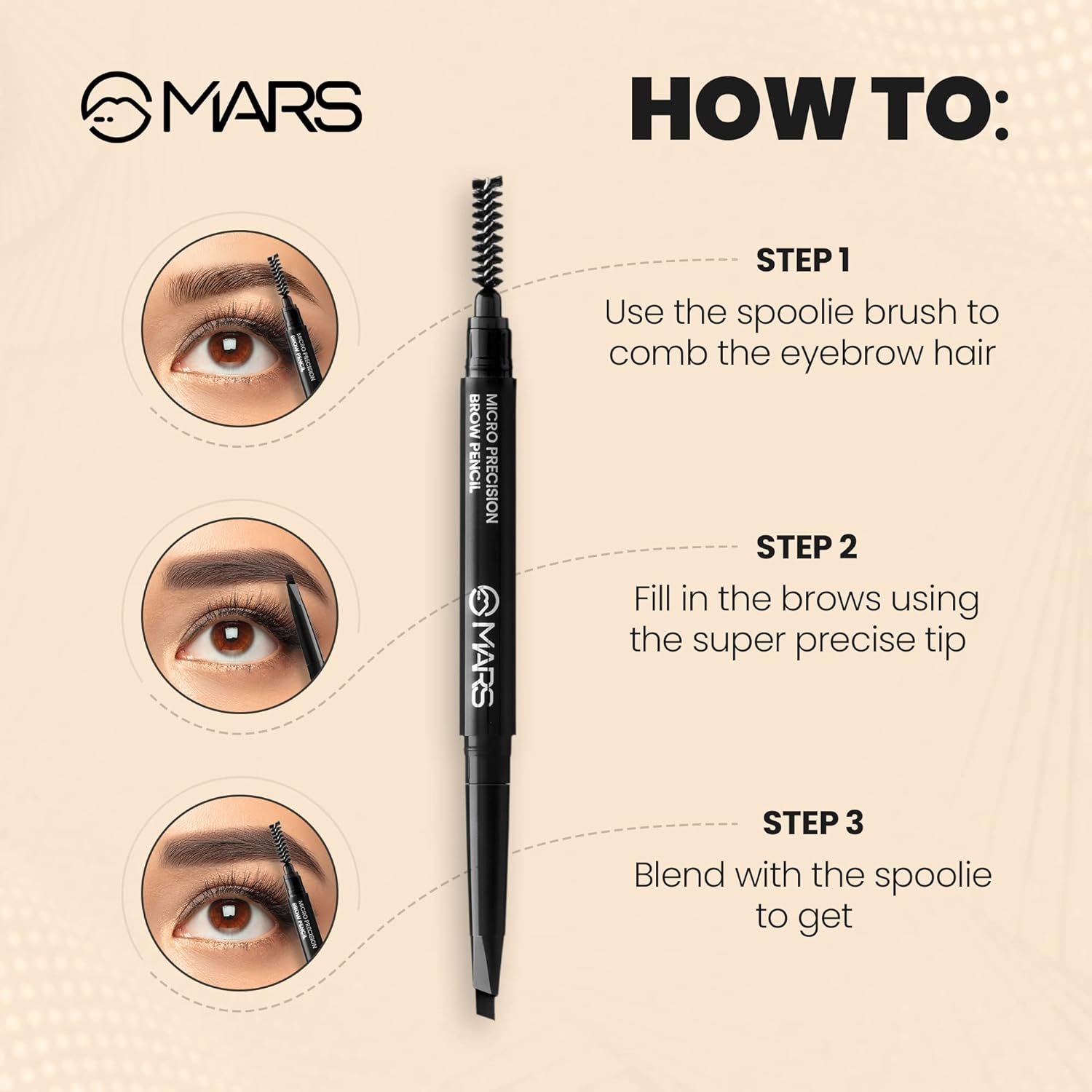 MARS Micro Precision Brow Pencil with spoolie | Retractable & Easy Glide | Long Lasting & Natural finish (0.4 g) (Black)